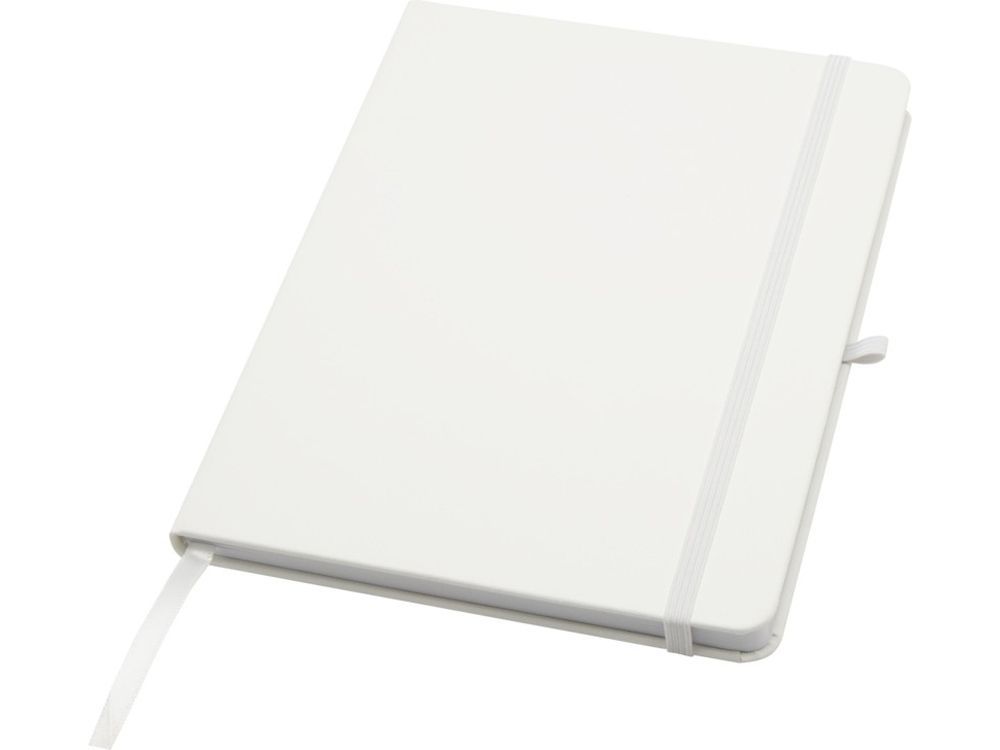 Блокнот Teak формата А5 в твердой обложке из картона с закругленными углами — это не только необходимая вещь в офисе, но и прекрасная возможность для продвижения вашего бренда. В блокноте 96 линованных листов бумаги плотностью 70 г/м2 и мягкая на ощупь обложка. В комплект входит петля для ручки, эластичная застежка и закладка-ленточка. Переработанная бумага.