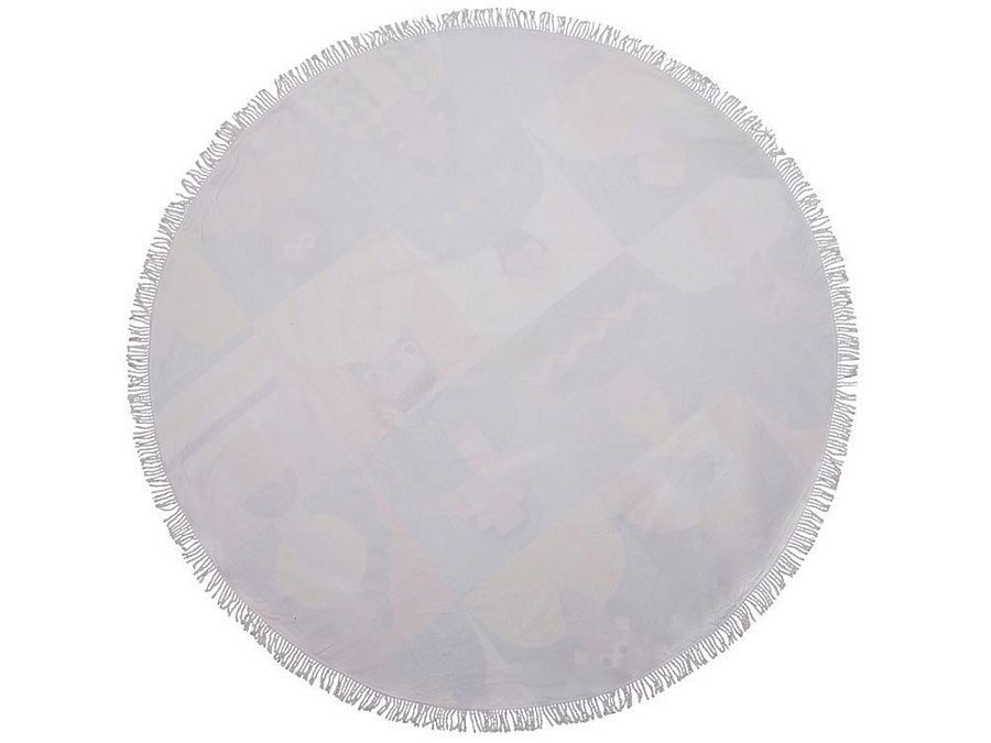 Необычный и трендовый вариант классического пляжного аксессуара. Круглая форма полотенца помогает быстро и удобно расстилать его на земле или шезлонге. Плотный полиэстер сохнет быстрее обычных тканей, поэтому полотенцу не требуется дополнительная упаковка после использования - достаточно ненадолго развесить его для просушки. Полноцветная печать на полотенце производится с помощью сублимации. Бахрома по краю может быть изготовлена в двух цветах (белый и чёрный) на выбор клиента.