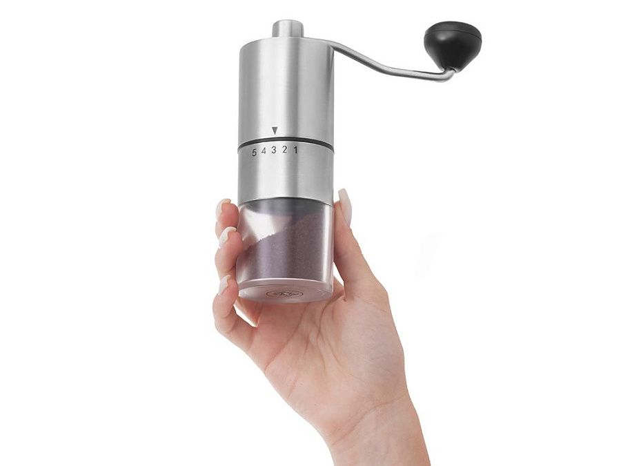 Компактная и элегантная механическая кофемолка «Alegria» для настоящих ценителей. Корпус из нержавеющей стали не только стильно выглядит, но и обеспечивает долговечность в использовании. Вместимость до 70 мл — оптимально для одной-двух порций свежемолотого кофе. Ручной механизм позволяет контролировать степень помола, сохраняя аромат и вкус зерен. Идеальна для дома, офиса или путешествий.