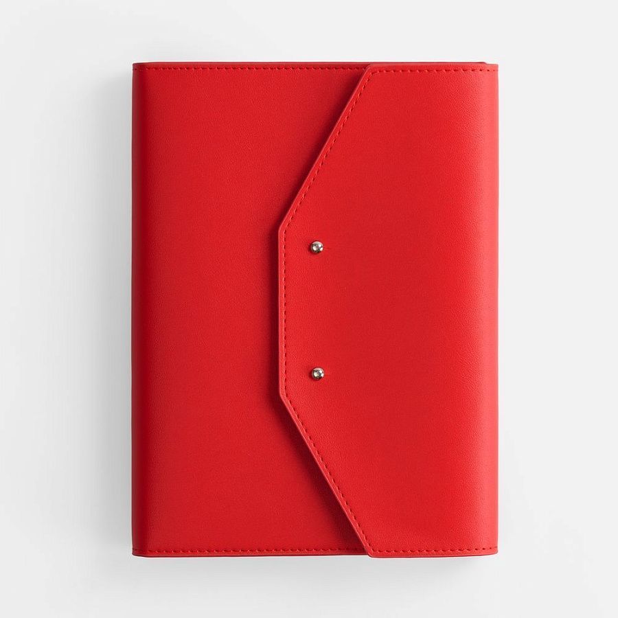 Ежедневник-органайзер в мягком переплете, формат А5+, с карманами для визиток и документов, петлей для ручки. Дополнен ляссе и капталом в цвет обложки. Клапан с прорезями застегивается на кобурные металлические кнопки.