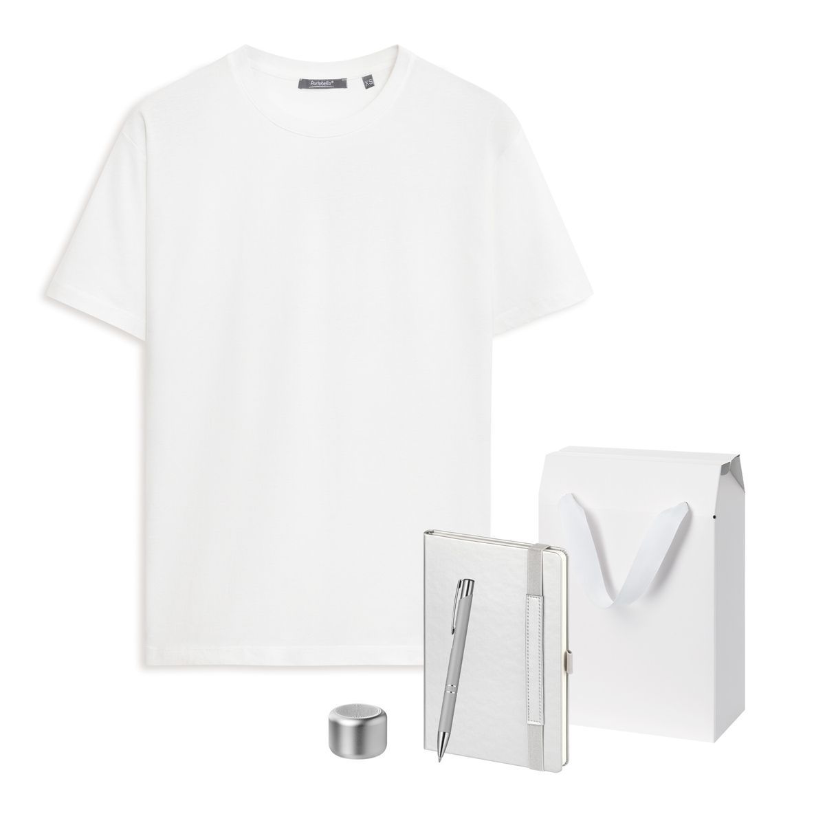 Набор с одеждой KRIS (футболка, колонка, ежедневник, ручка), серебряный, S, артикул 2500057.111.01
