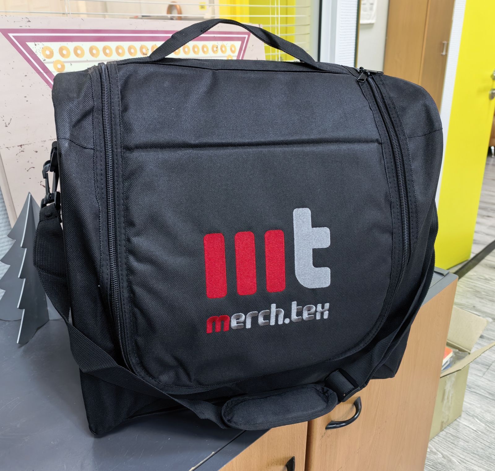 Эта сумка - идеальный вариант для хранения и демонстрации образцов бренда MerchTex!Внутри помещается комплект из бейсболок, толстовок и футболок, чтобы все нужные образцы были всегда под рукой, а разделительная полка посередине гарантирует сохранность и порядок. Сумка оснащена двумя ручками - короткой и длинной - для комфортной переноски. Дно и задняя панель имеют дополнительной укрепление, чтобы ваши образцы всегда имели безупречный вид.