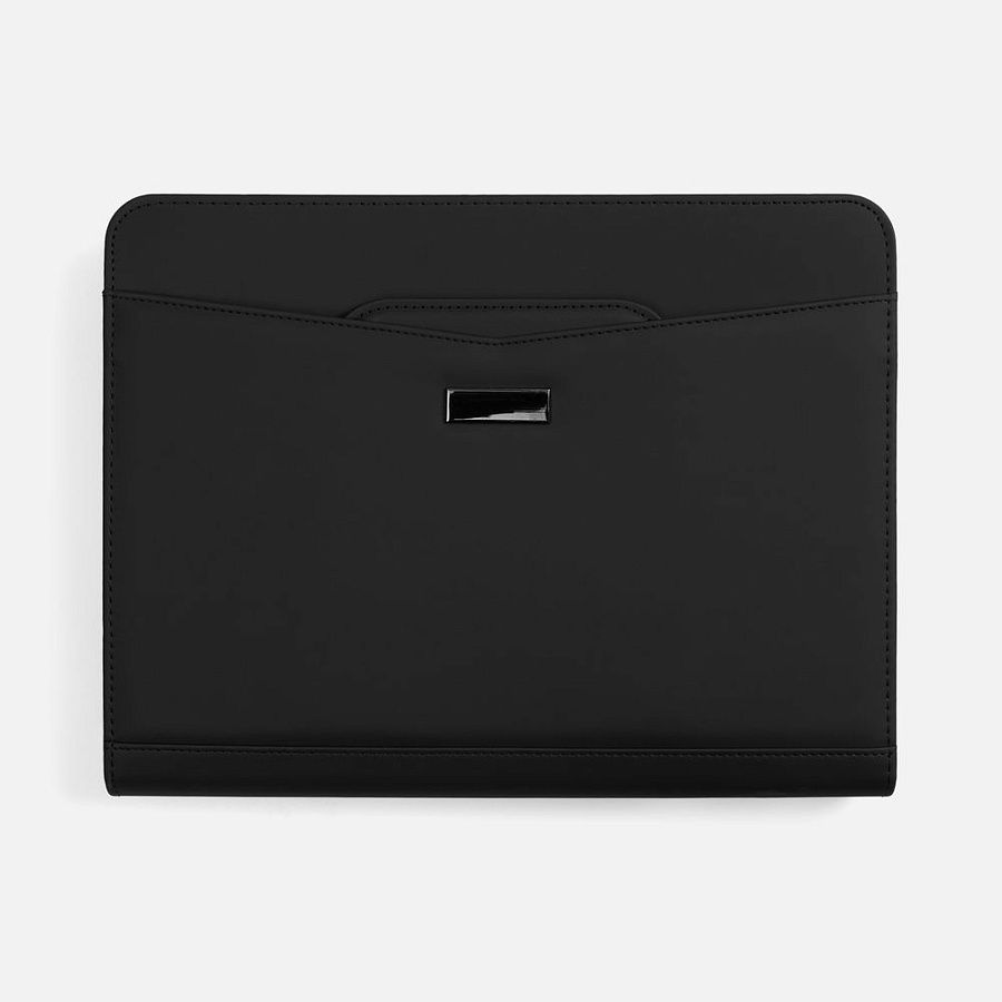 Во вместительной папке предусмотрено множество отделений для визиток, бумаг и письменных принадлежностей — для идеальной организации пространства. Особое преимущество — встроенный блокнот с листами в линейку, который можно легко открепить и положить на его место свои записи, например, для презентаций.