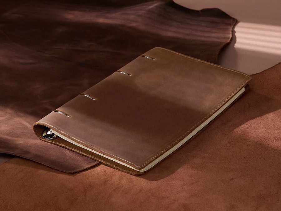 Ежедневник со съемным блоком на кольцах, выполнен из натуральной кожи.