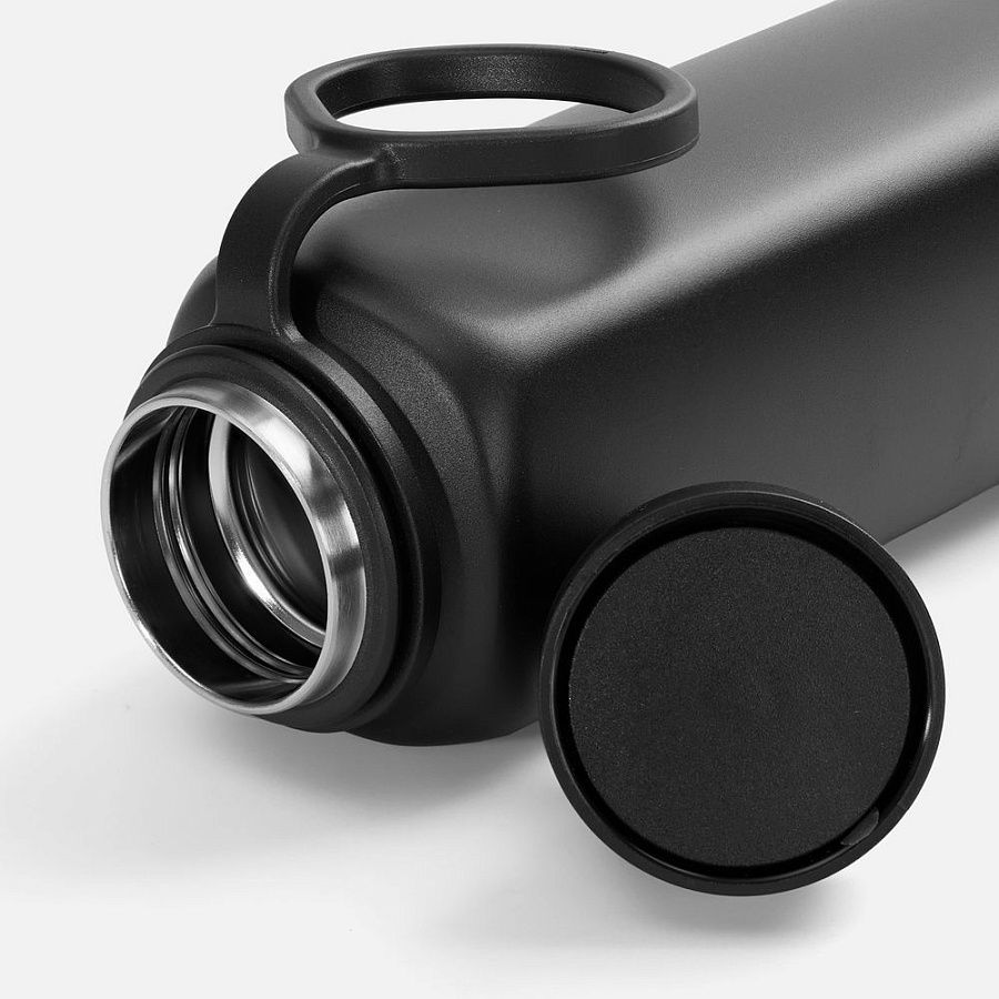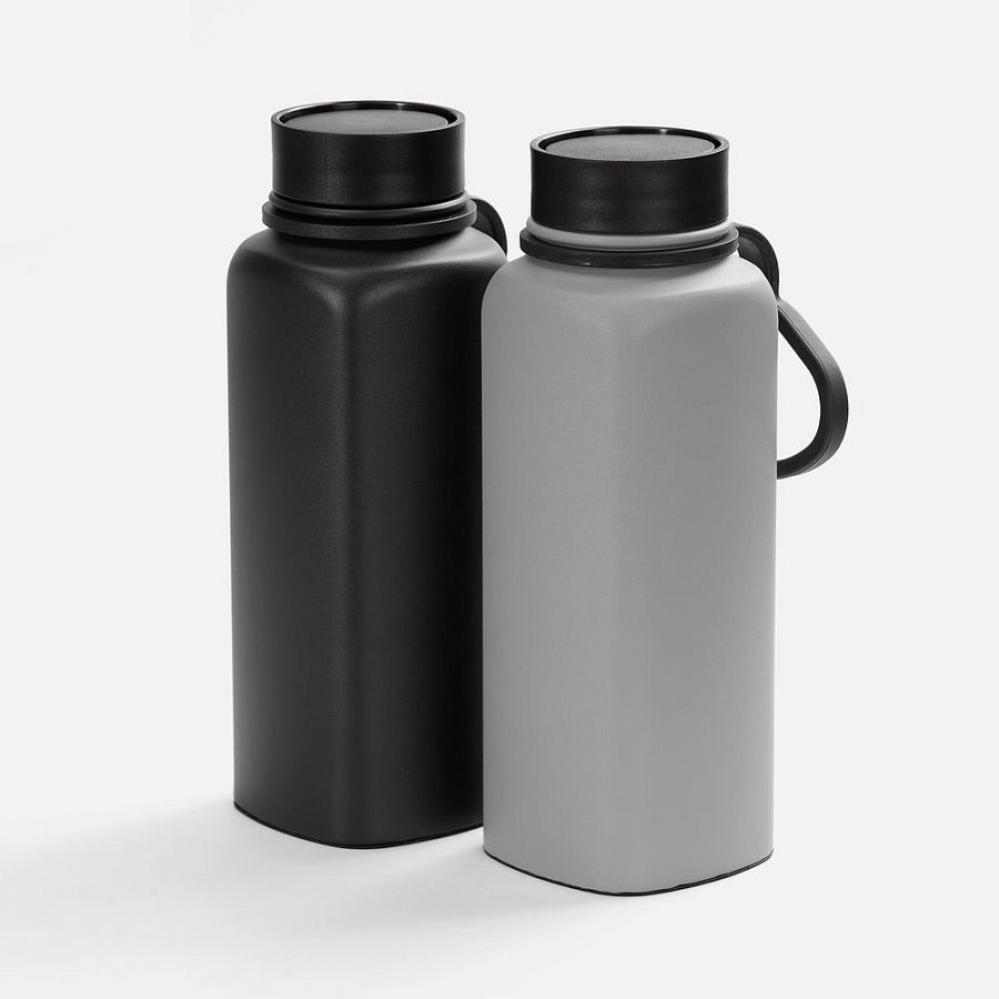 Термос оригинальной четырехгранной формы с надежной ручкой для переноски и удобным клапаном, который открывается и закрывается одним нажатием. Пить можно с любой стороны.