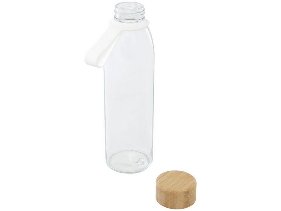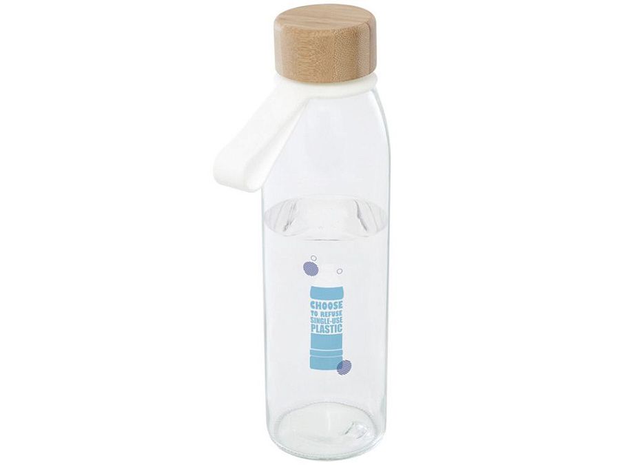 Одностенная стеклянная бутылка для воды с завинчивающейся бамбуковой крышкой, произведенной из более устойчивых и социально ответственных источников. В комплект входит удобный силиконовый ремешок для удобной переноски. Поставляется в подарочной коробке из переработанного картона. Объем: 500 мл. Стекло, FSC certified bamboo. упаковка FSC Mix Credit P5.1 CU-COC-877277. FSC 100% N5 CU-COC-877277.