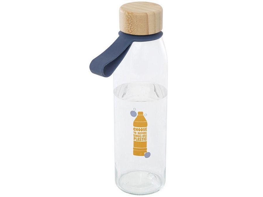 Одностенная стеклянная бутылка для воды с завинчивающейся бамбуковой крышкой, произведенной из более устойчивых и социально ответственных источников. В комплект входит удобный силиконовый ремешок для удобной переноски. Поставляется в подарочной коробке из переработанного картона. Объем: 500 мл. Стекло, FSC certified bamboo. упаковка FSC Mix Credit P5.1 CU-COC-877277. FSC 100% N5 CU-COC-877277.