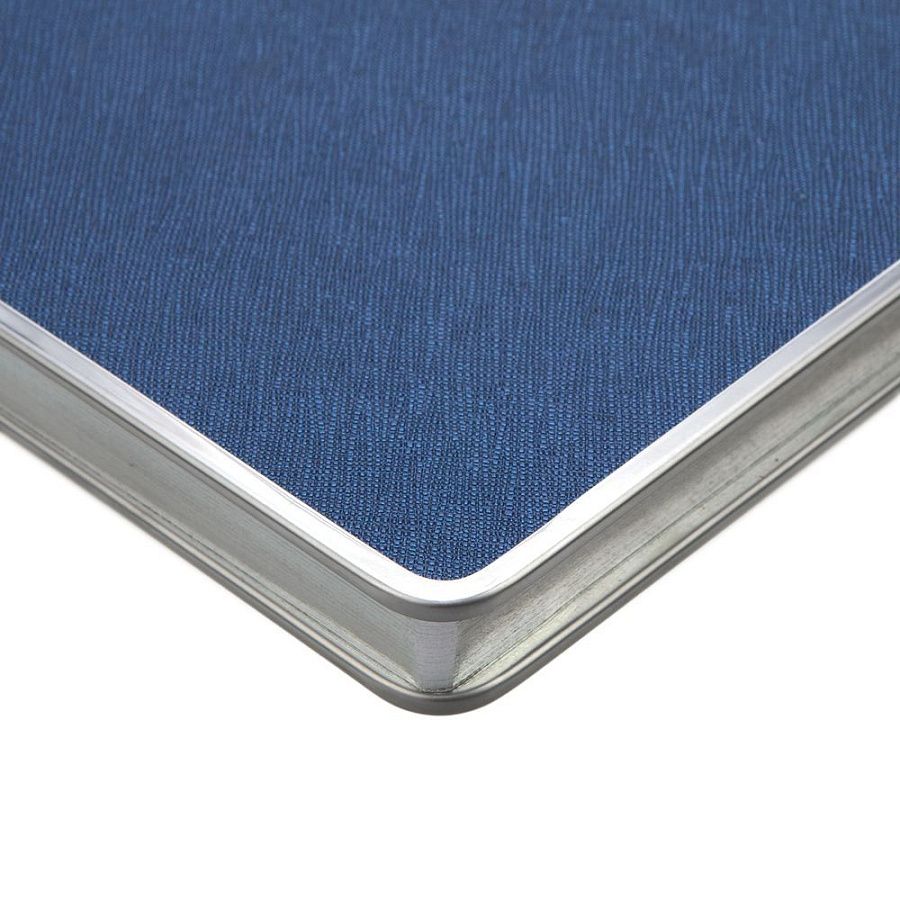 Ежедневник с твердой обложкой и серебристым обрезом, выполнен из материала Saffian, синий, дополнен серым ляссе и металлическими рамками.