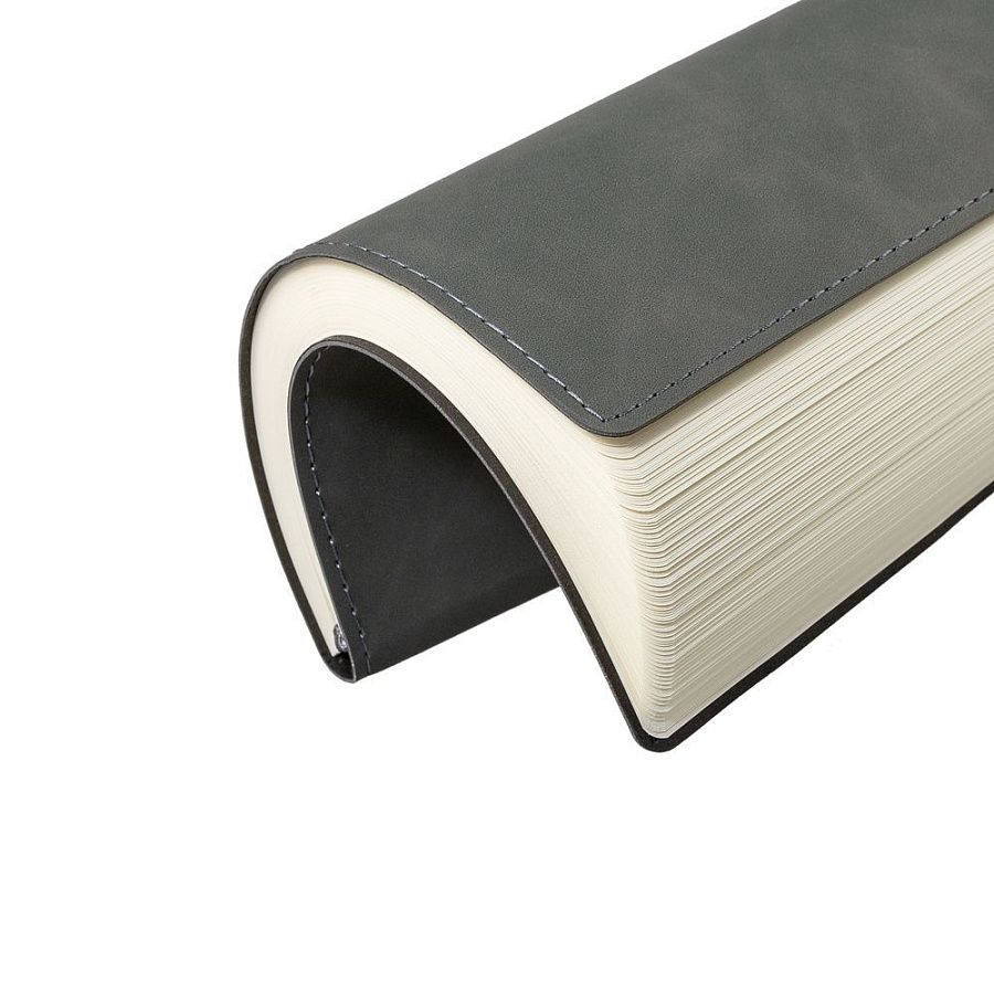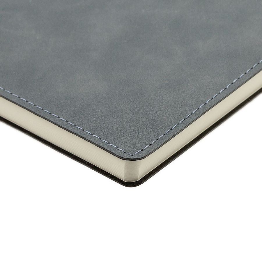 Ежедневник  17х24 см, с гибкой обложкой, выполнен из материала Nubuck Touch, темно-серый ЕЕ, дополнен петлей-лейблом для ручки и двойным ляссе в цвет материала.