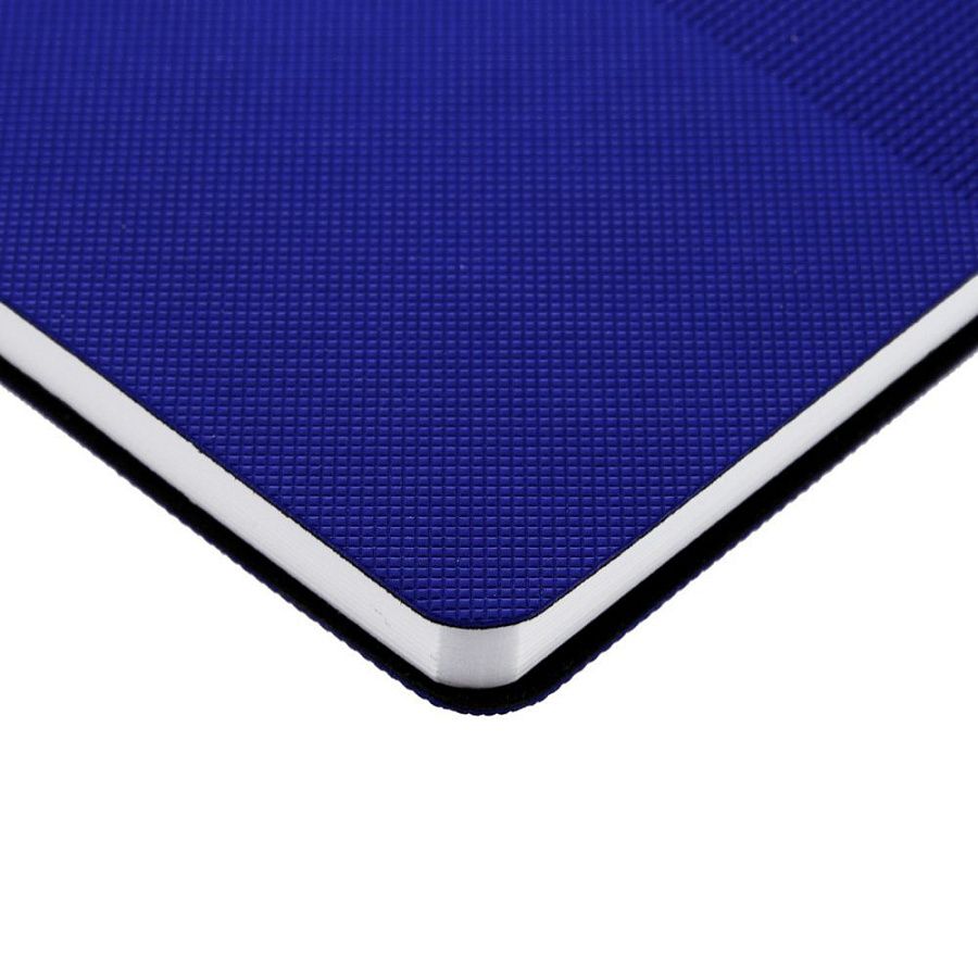 Ежедневник с гибкой обложкой, выполнен из материала Canyon, синий НН, дополнен ляссе в цвет обложки. Блинтовое тиснение на обложке создает эффект вязаного полотна.