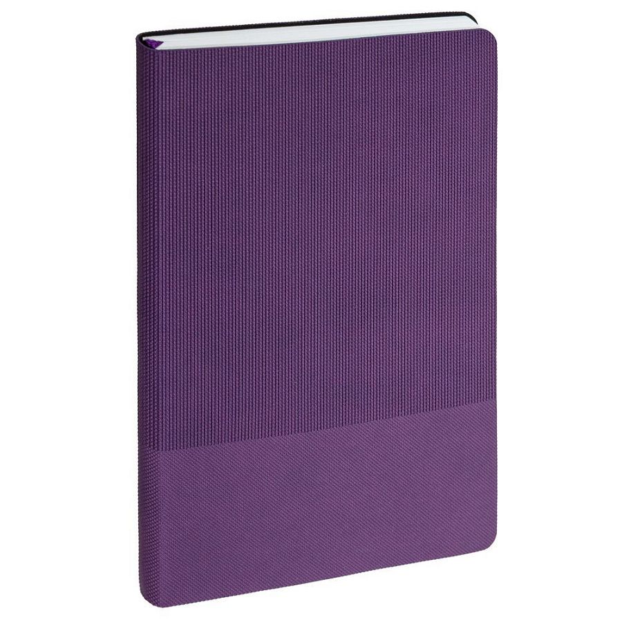 Ежедневник с гибкой обложкой, выполнен из материала Canyon, фиолетовый UU, дополнен ляссе в цвет обложки. Блинтовое тиснение на обложке создает эффект вязаного полотна.