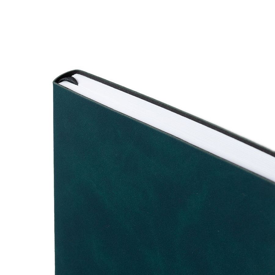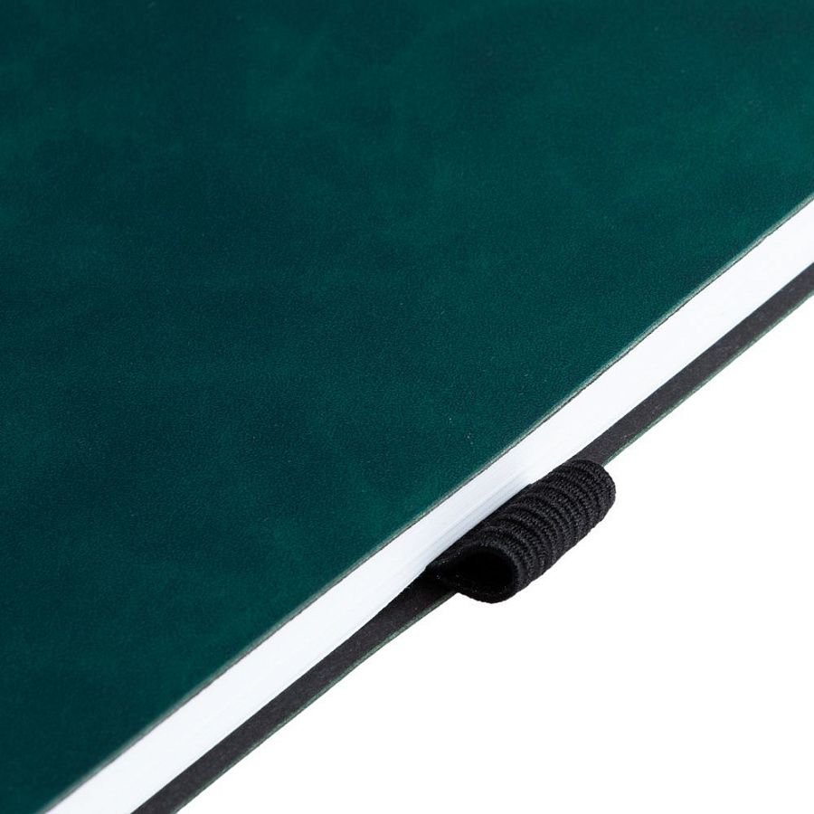 Ежедневник с гибкой обложкой, выполнен из материала Nubuck Touch, зеленый VV, дополнен ляссе и петлей-резинкой для ручки черного цвета.
