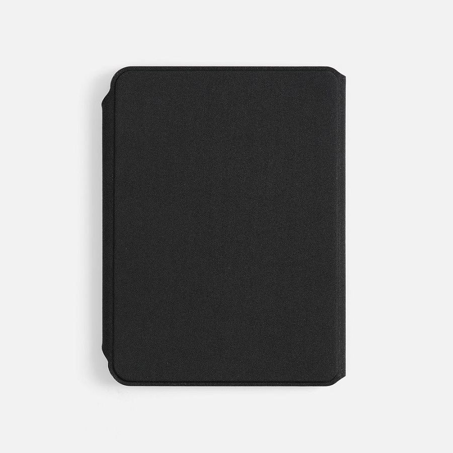 Обложка из ткани, на магнитной застежке с деревянной шильдой:
