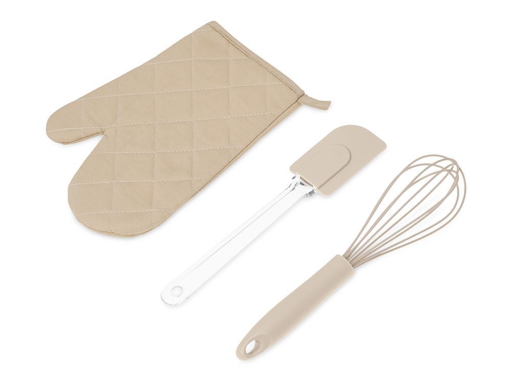Набор Canele состоит из трёх предметов, без которых не обходится приготовление ни одного пирога или торта: венчика для взбивания яиц или крема, лопатки и прихватки для горячего. Силиконовая лопатка не царапает посуду, безопасна при нагревании, и к ней не прилипает тесто. Венчик также сверху покрыт силиконом, что позволяет его использовать с любыми ёмкостями, не боясь их повредить. Прихватка с одной стороны стёганая, а с другой абсолютно гладкая, благодаря чему на ней эффектно будет смотреться нанесённое изображение. Все предметы сложены в специальный мешочек, который также можно брендировать. • Функциональность • Лаконичный дизайн • Большая поверхность под нанесение