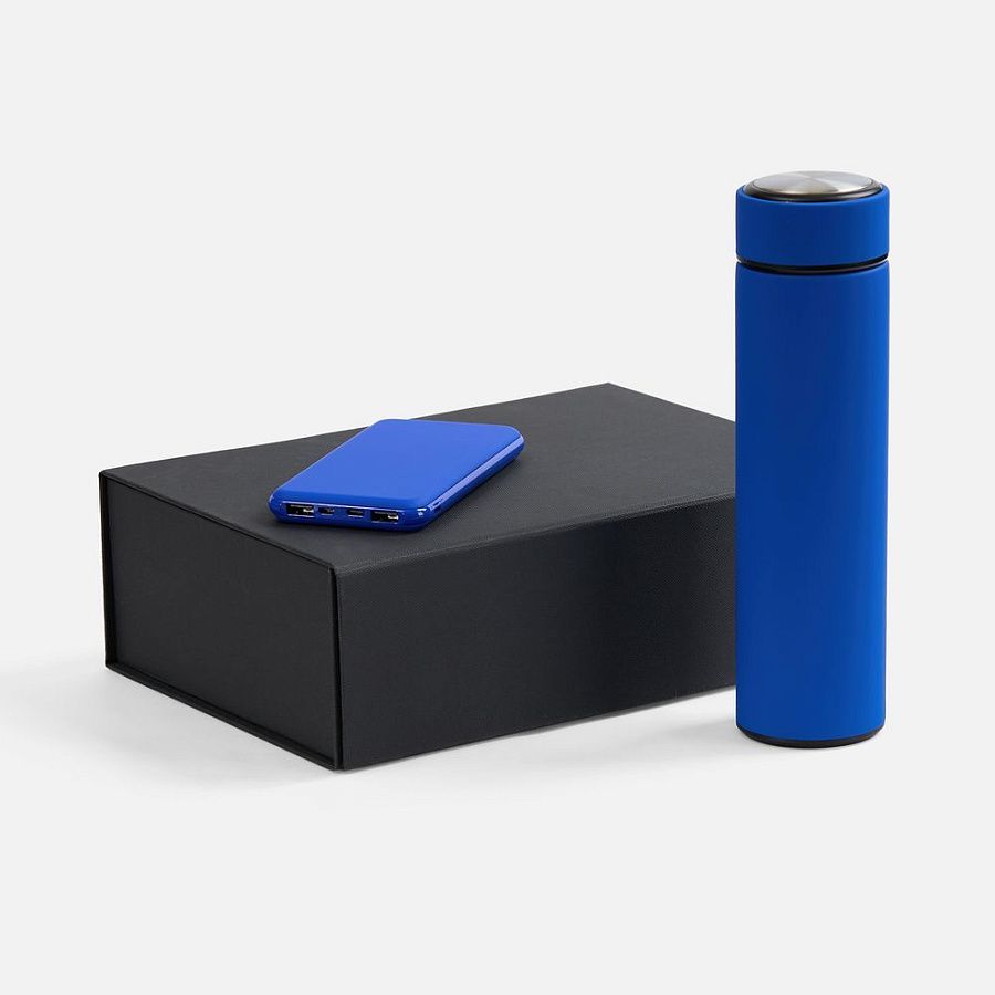 аккумулятор - пластик; покрытие софт-тач; термос - нержавеющая сталь, 304; покрытие софт-тач; коробка - переплетный картон