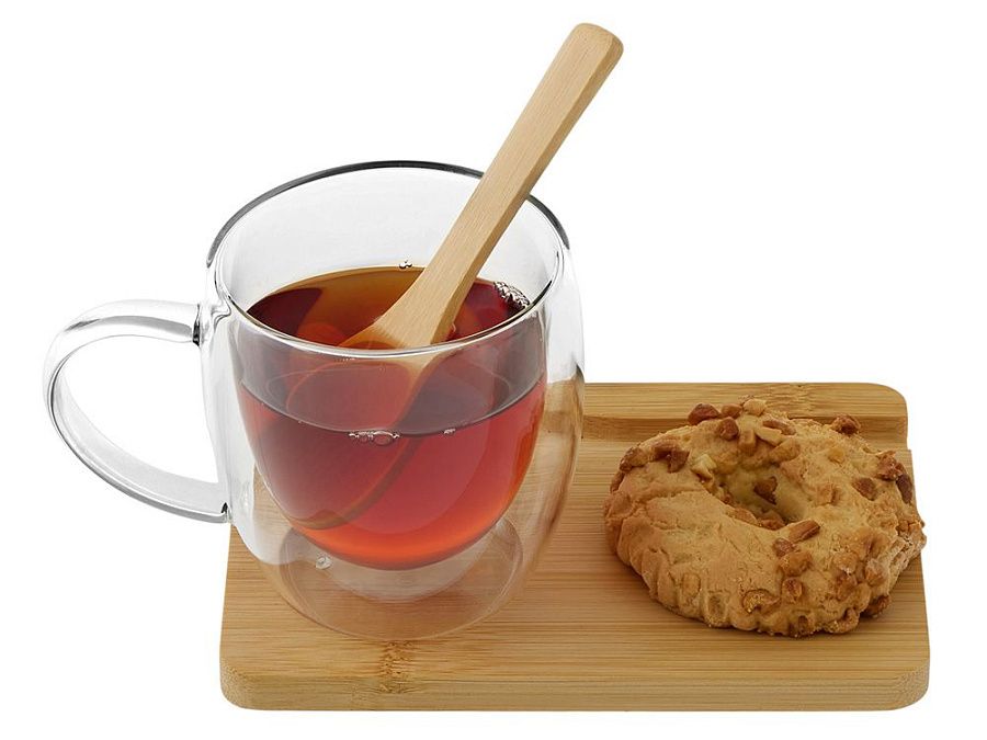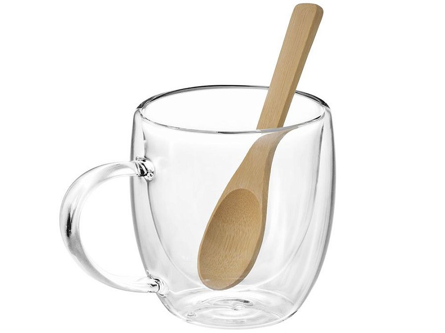 Кружка с двойными стенками на подставке с ложкой «Teatrio», цвет: прозрачный, артикул 110920