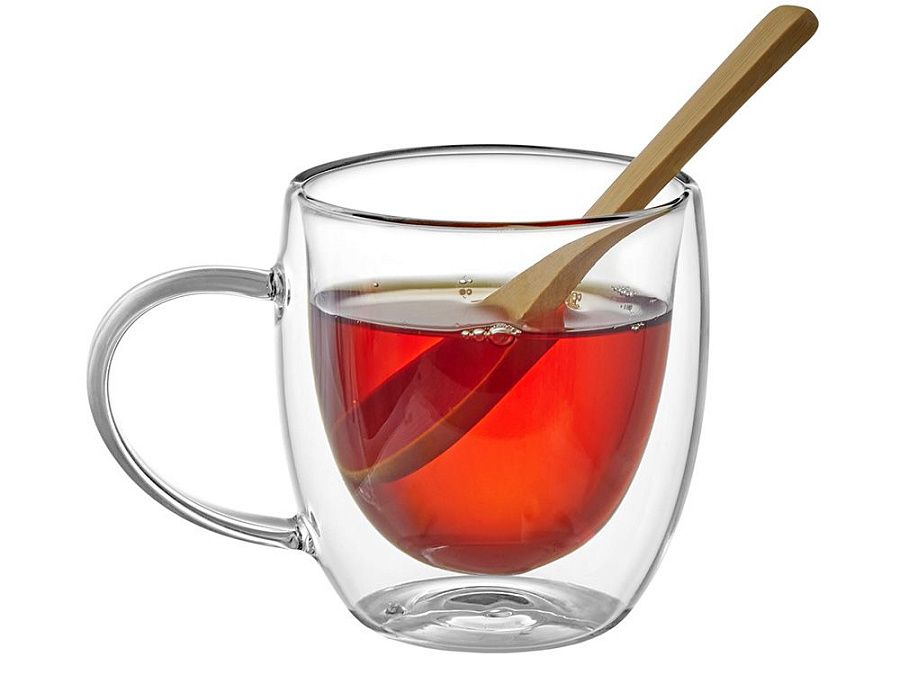Кружка с двойными стенками на подставке с ложкой «Teatrio», цвет: прозрачный