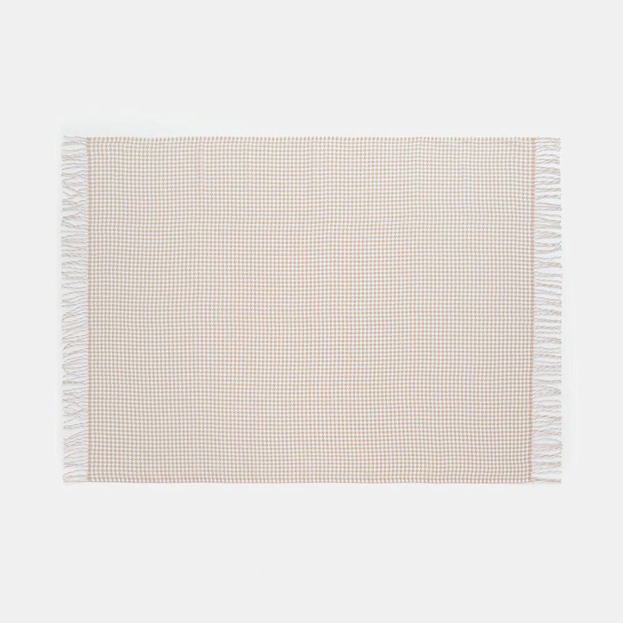 Графичный узор «гусиная лапка» (или «pied-de-poule») превращает изделие в изысканный интерьерный акцент, а бахрома добавляет ему элегантности и завершенности. Это воплощение безупречного вкуса и дань вневременной классике.