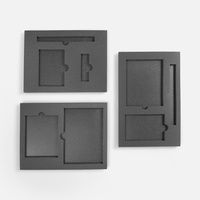 Ложемент, изготовленный из материала Izolon 500 черного цвета, представляет собой многослойную конструкцию, состоящую из нижнего слоя толщиной 5 мм и верхнего слоя толщиной 10 мм. В соответствии с утвержденным макетом, проемы для размещения предметов могут быть спроектированы как в одном, так и в обоих слоях.
