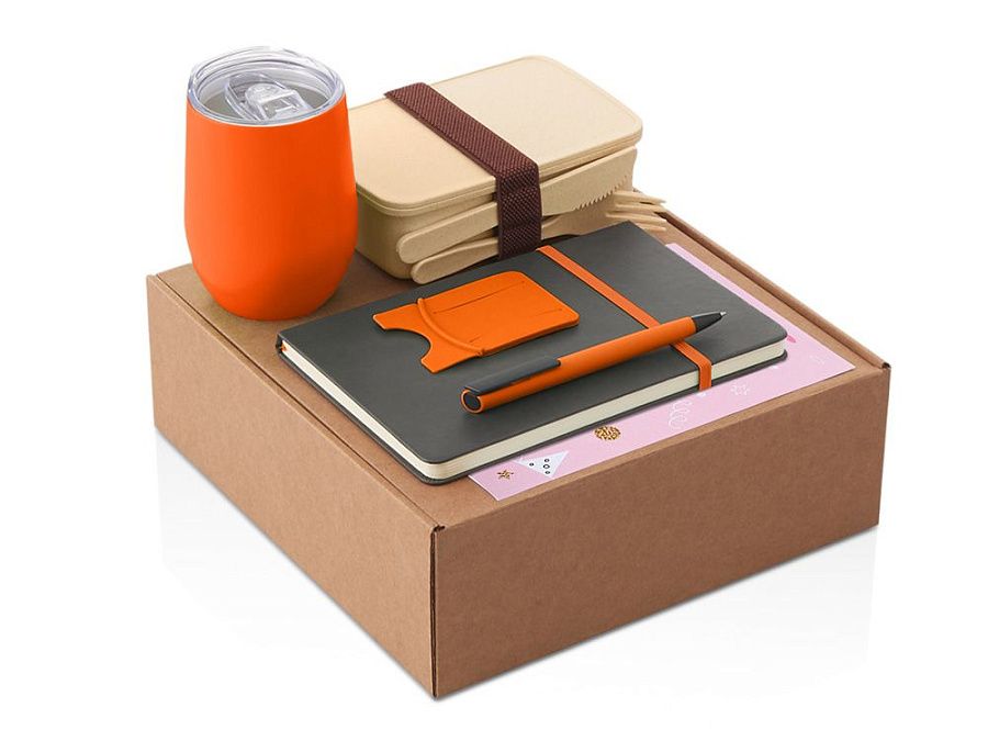 - Подарочные наборы с термокружкой оранжевого цвета