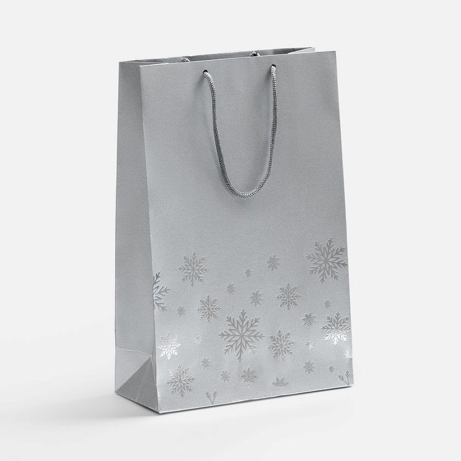 Пакет из бумаги Galaxy Metallic (TPG) плотностью 120 г/м² с тиснением серебристой фольгой.Выдерживает вес до 2 кг.