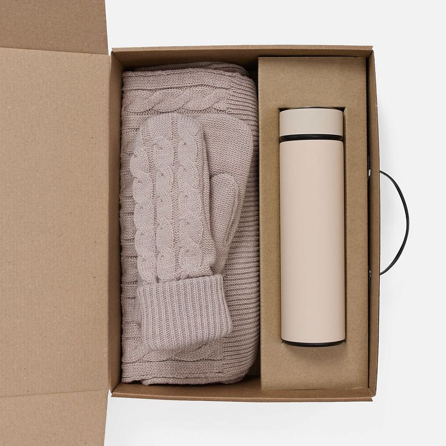 шарф, варежки - акрил 100%; термос - нержавеющая сталь, 304; покрытие софт-тач; коробка - микрогофрокартон
