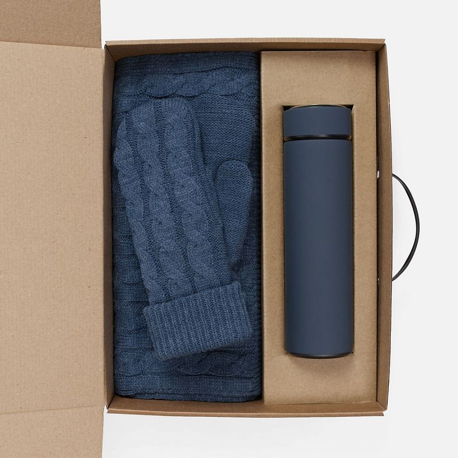 шарф, варежки - акрил 100%; термос - нержавеющая сталь, 304; покрытие софт-тач; коробка - микрогофрокартон