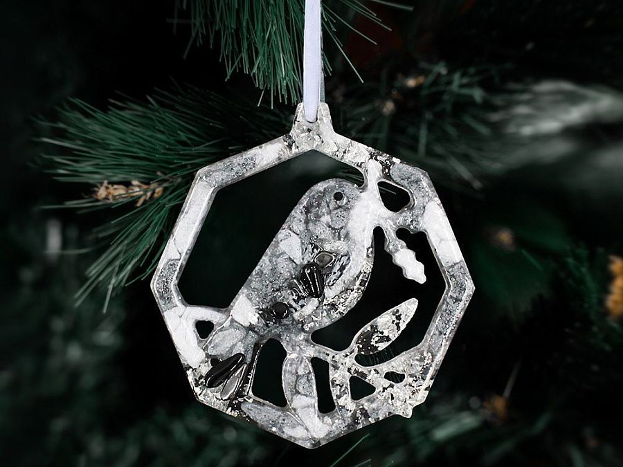 Игрушка бережно упакована в картонную коробку с внутренним вкладышем, который надежно фиксирует её внутри. Для вашего удобства в комплекте есть ленточка, чтобы игрушку можно было сразу повесить на ёлку.