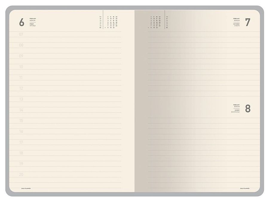 Элегантный датированный ежедневник "Megapolis Color" от Bruno Visconti идеально подходит для организации рабочего дня и ведения важных записей. Обложка из искусственной кожи с приятным на ощупь покрытием Soft Touch и обрез в тон создают гармоничный образ. Внутри – блок из бежевой бумаги плотностью 70 г/кв.м с разделами для планирования, календарем на 2026-2027 год и полезной справочной информацией. Для удобства навигации предусмотрена закладка-ляссе шириной 7 мм в цвет обложки.