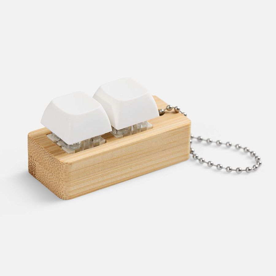Компактный антистресс из бамбука на металлической цепочке с двумя кликающими кнопками, имитирующими механическую клавиатуру, Поможет снять стресс и беспокойство, а также улучшить концентрацию в сложные дни.