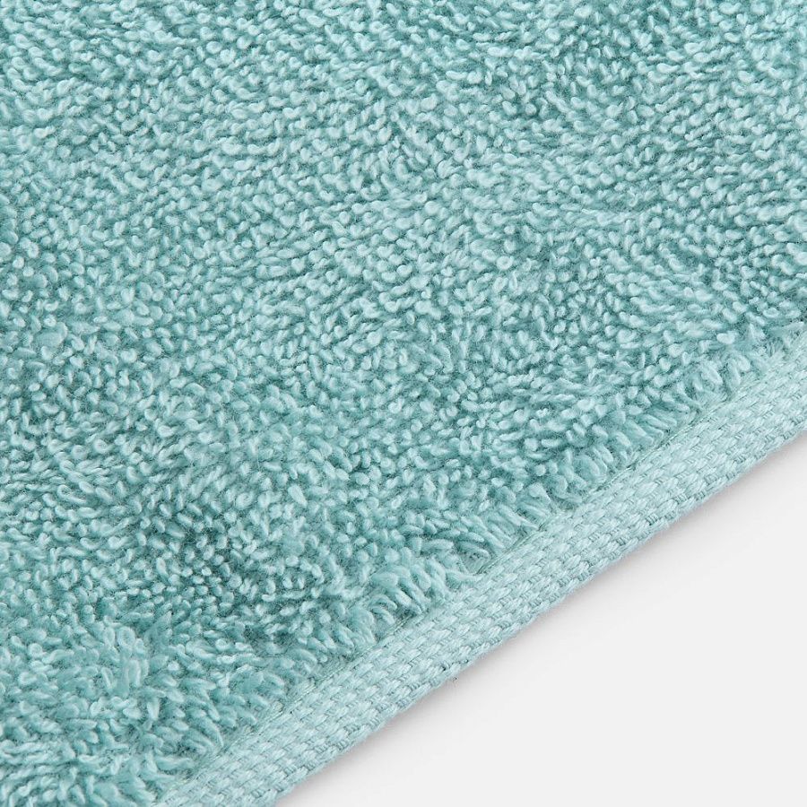 Светлые оттенки в сочетании с широким бордюром с рельефным растительным узором придают полотенцу элегантный и свежий вид.