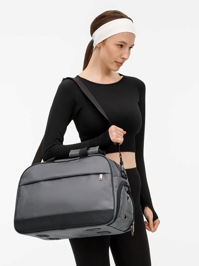 Усиленное дно с рифлеными ножками защищает сумку от износа, а боковое отделение с вентиляцией идеально подходит для обуви. Сумка оснащена удобными ручками и регулируемым плечевым ремнем, что обеспечит комфорт при переноске.