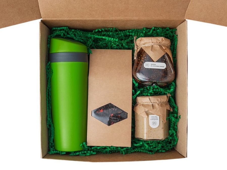 - Подарочные наборы с чаем/кофе зеленого цвета