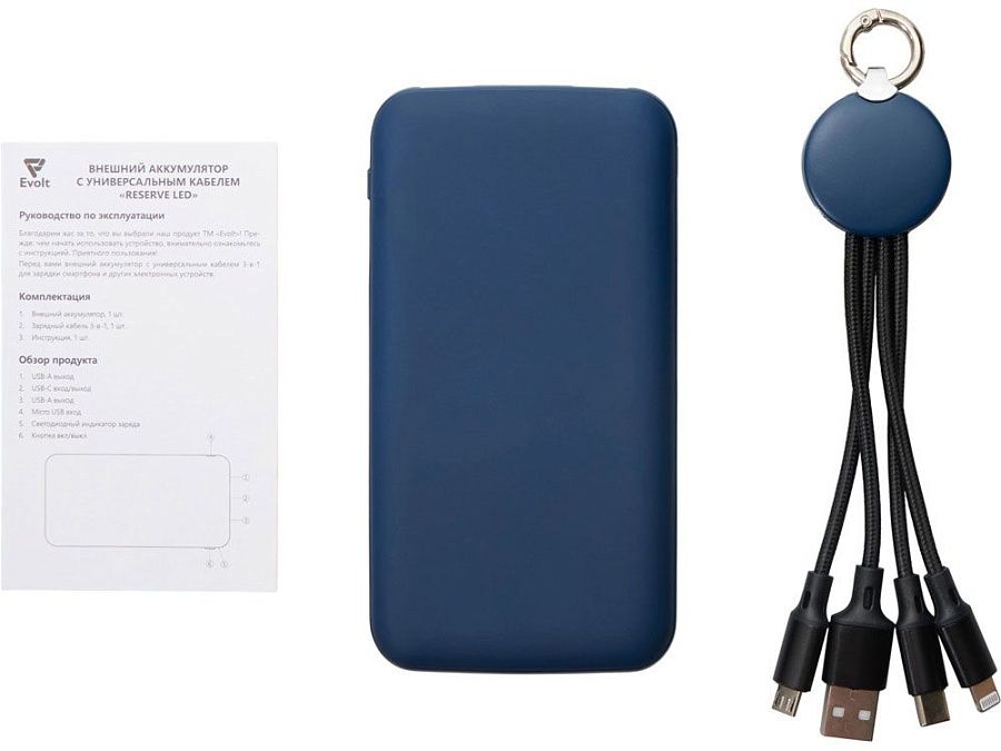 внешний аккумулятор, зарядный кабель 3-в-1, инструкция
