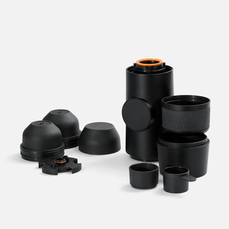 Портативная кофемашина создает давление до 15 бар для приготовления настоящего эспрессо и управляется одной кнопкой. Одного запуска хватает на 2 чашки эспрессо по 30 мл, минимальное количество воды для запуска 50 мл. Готовит до 50 чашек на одной зарядке.