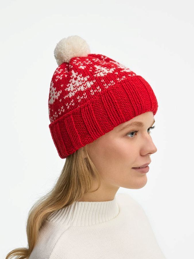 Шапка с отворотом, связанном резинкой, и контрастным пушистым помпоном — зимняя классика прямиком из детства. В ней захочется насладиться всеми радостями сезона: отправиться на каток, поиграть в снежки или с ветерком прокатиться на лыжах.