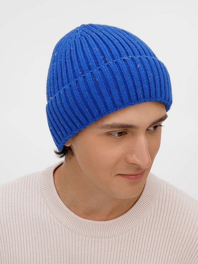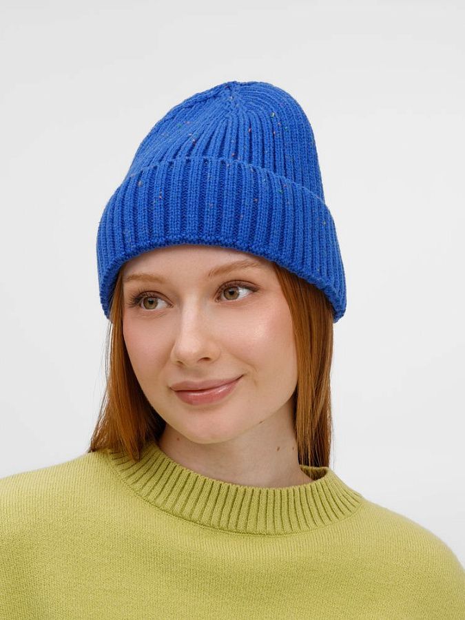 Шапка-бини с отворотом выполнена крупной резинкой из мягкой акриловой пряжи, которая создает дополнительный объем и хорошо сохраняет тепло. Благодаря оригинальному дизайну она позволит создать запоминающийся образ со стильным и лаконичным акцентом.