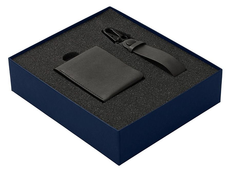 Комплектация: складной бумажник, ключный ремешок с карабином.