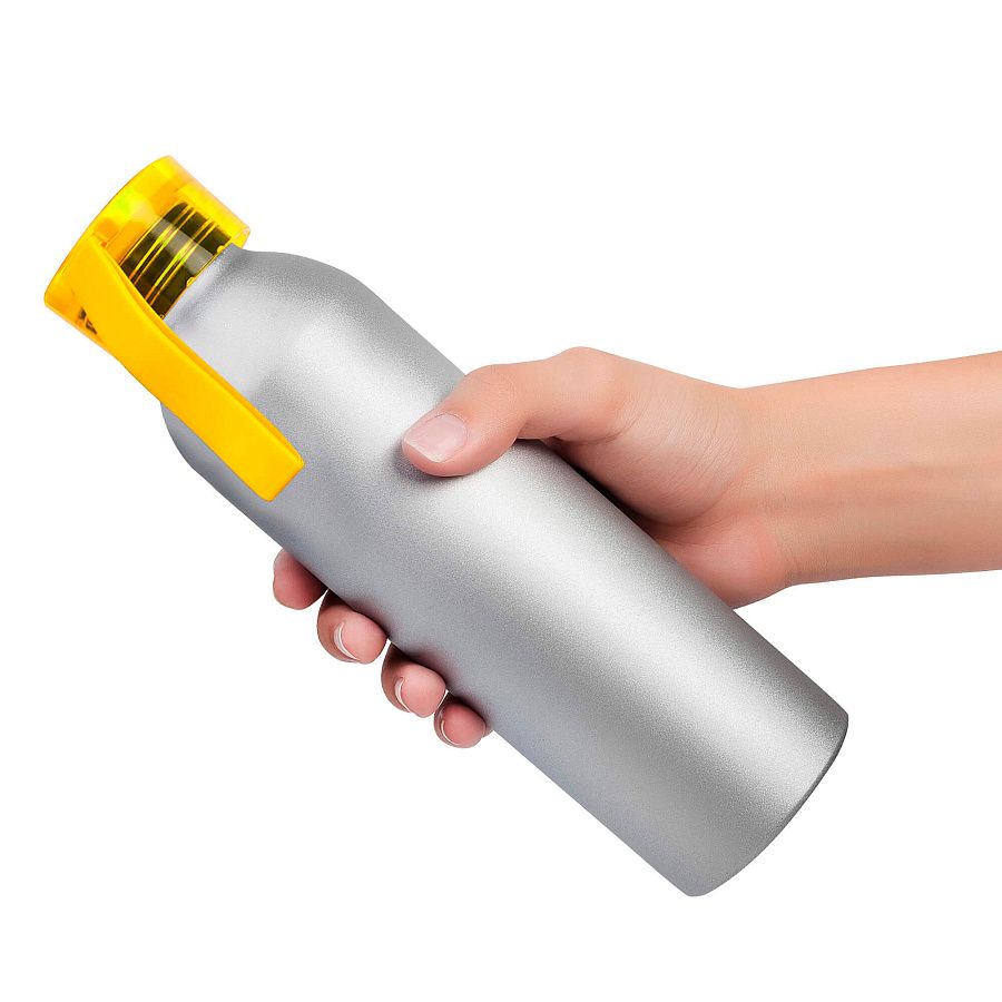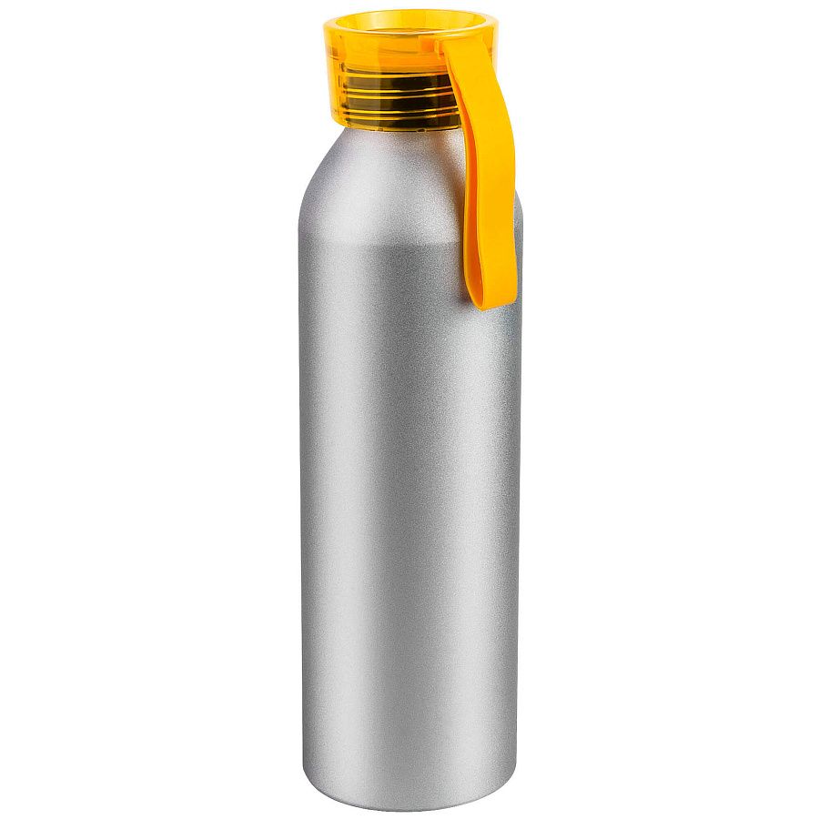 Алюминиевая матовая бутылка с пластиковой крышкой.