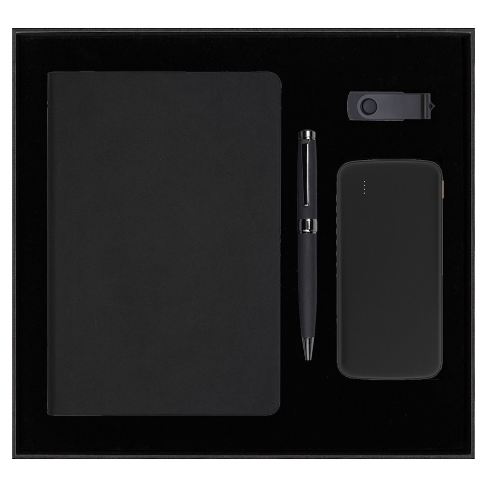 Набор подарочный Solution Prestige Quadro (ежедневник, внешний аккумулятор, флеш-накопитель, ручка), чёрный, артикул 615010