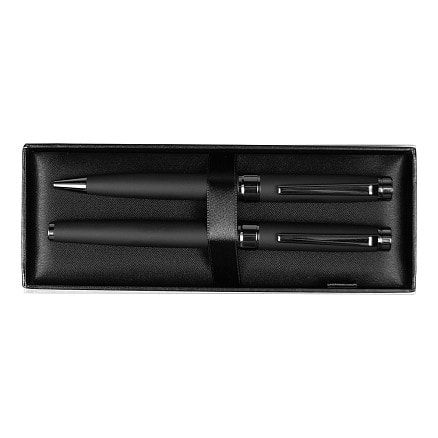 · Футляр для одной или двух ручек, бумажный, черный с серебристым элементом. Основа изготовлена из плотного высококачественного картона, вкладыш футляра имеет гладкую, приятную на ощупь текстуру. Пишущий инструмент закрепляется с помощью резинки. Футляр подходит для одной или двух ручек, так же подходит для механического карандаша. Максимальная длина вложения - до 16,5 см.
