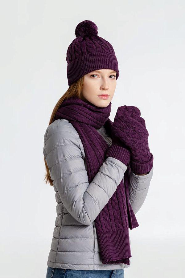 Варежки фактурной вязки с манжетой и подкладом из флиса.
