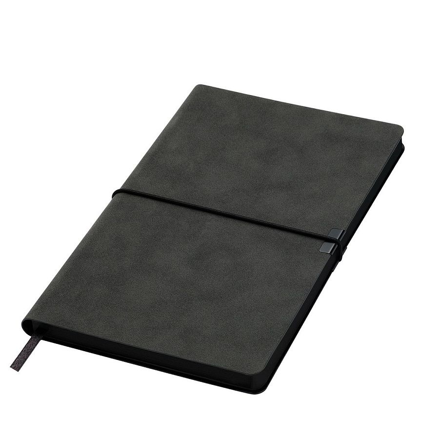 Горизонтальная резинка, фиксирующая обложку, дополнена металлическими элементами, которые не только защищают обложку от повреждений, но и служат стильным акцентом. Матовый срез в тон обложки и светло-кремовые страницы из гладкого, слегка шелковистого офсета подчеркивают изысканность дизайна. Атласное ляссе гармонично завершает образ этого элегантного ежедневника.
