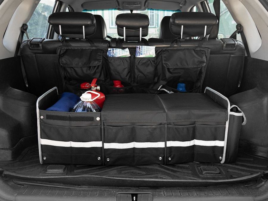 Органайзер состоит из трех основных отсеков, бокового кармана с клапаном и фронтальных карманов из сетки, что позволяет удобно хранить самые разные предметы: бутылки, сумки, инструменты, продукты и аксессуары. Также в комплект входит сумка-холодильник с водонепроницаемой подкладкой, которую можно вставить в одно из отделений, использовать отдельно, а когда она не нужна, сложить и убрать в боковой карман органайзера.