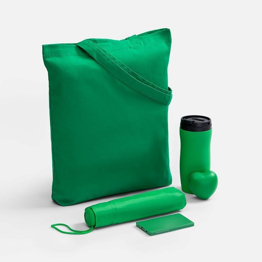 зонт - полиэстер 190t, ручка - пластик; покрытие софт-тач; каркас, спицы - металл; аккумулятор - пластик; крышка термостакана, внутренняя колба - пластик, корпус - нержавеющая сталь; покрытие софт-тач; сумка - хлопок 100%, плотность 210 г/м²; антистресс - вспененный полиуретан