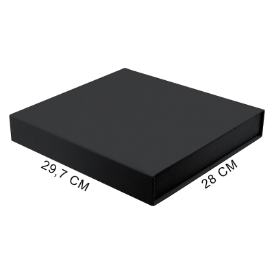 Подарочная коробка, размер 28,5х26,5х4 см, Solution Prestige Linen с магнитным клапаном, черная, с черным ложементом