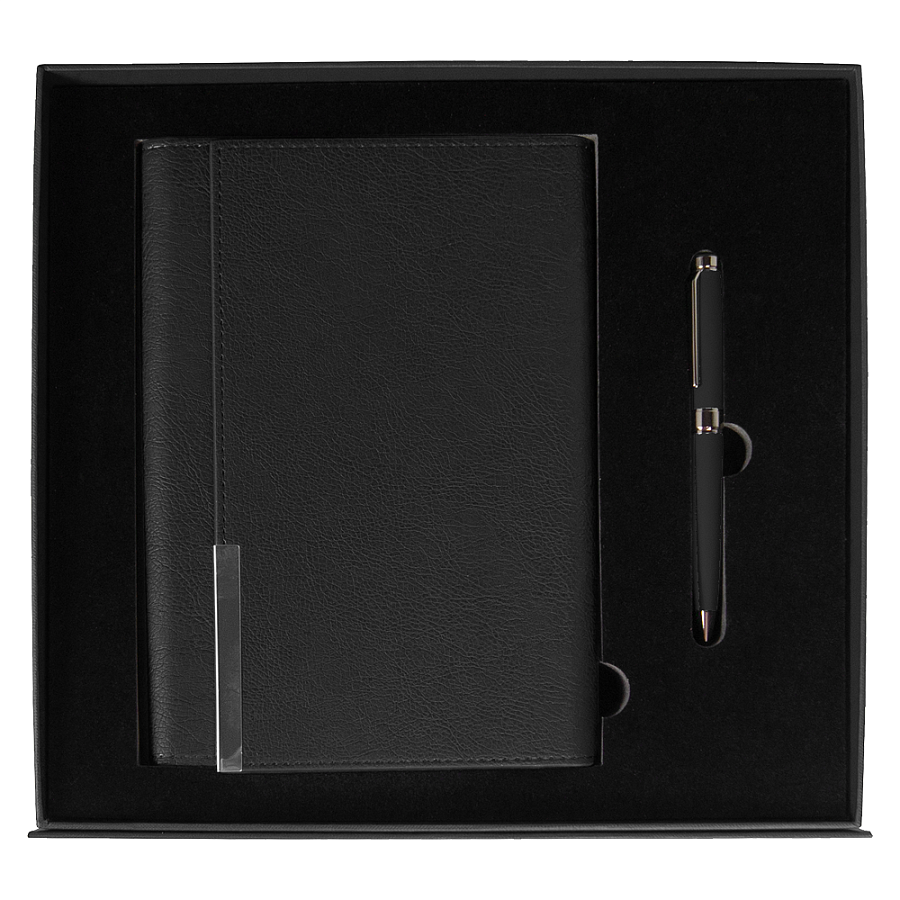 Подарочный набор River side, черный (ежедневник, ручка, аккумулятор)