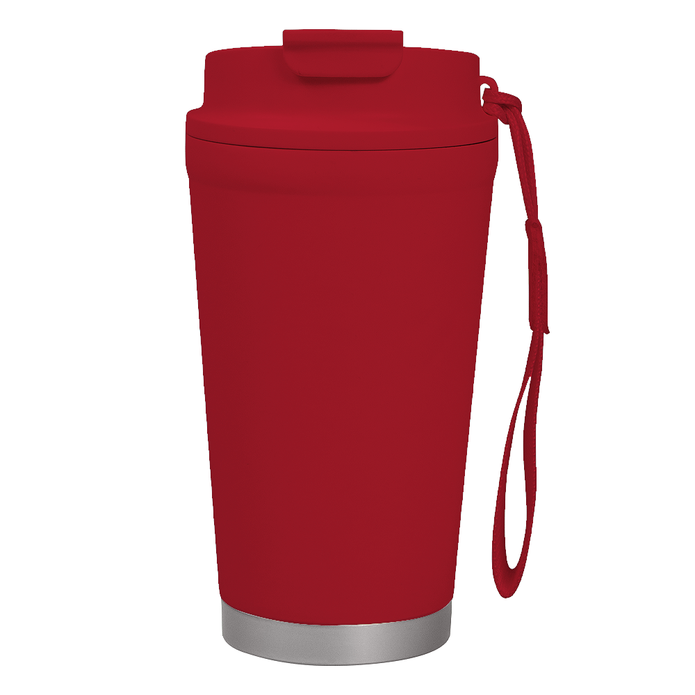Металлическая термокружка объёмом 410 мл с матовым покрытием и контрастным металлическим основанием. Оснащена герметичной крышкой с откидным клапаном и удобным ремешком для переноски. Поддерживает температуру напитков и подходит для использования в дороге, на работе и в путешествиях.