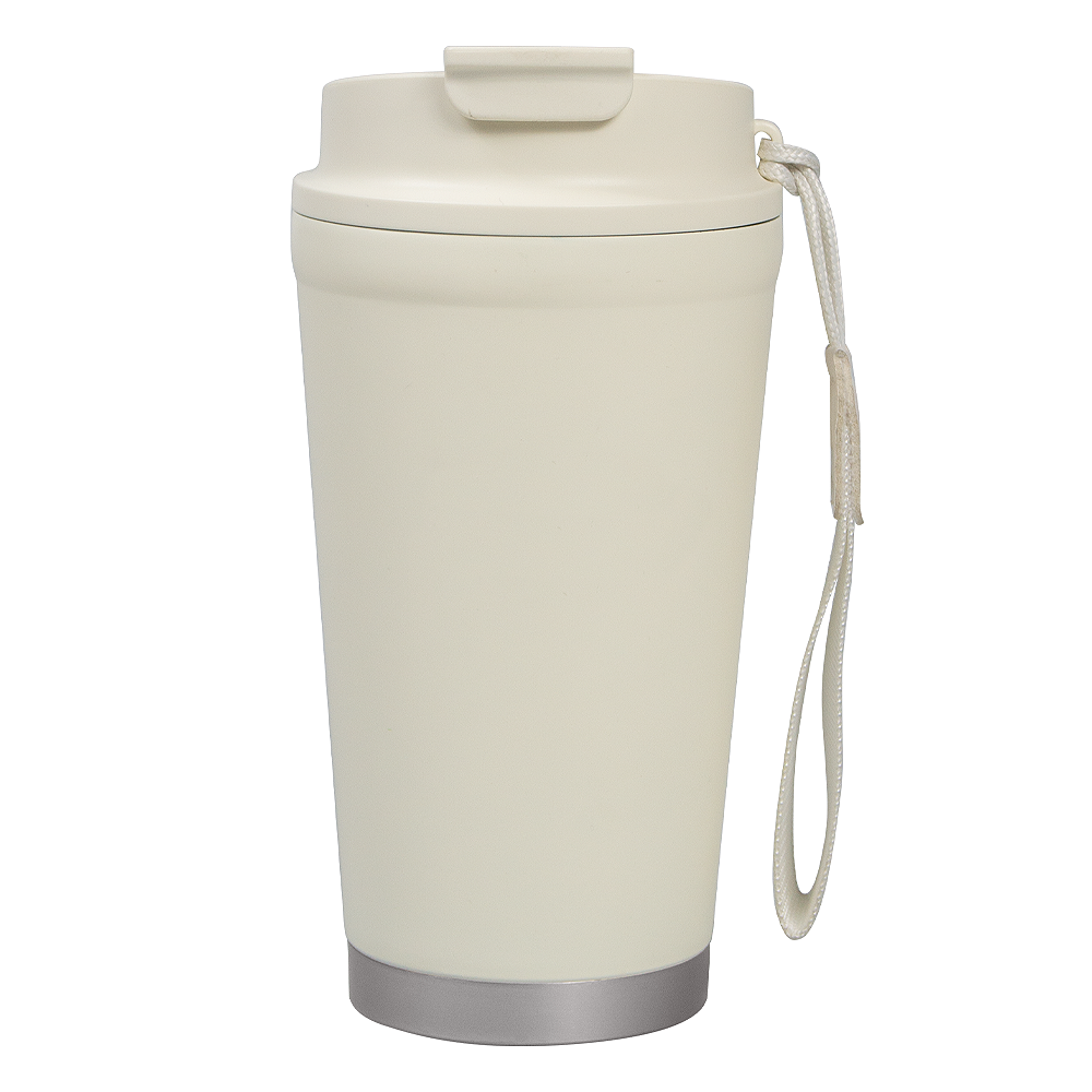 Металлическая термокружка объёмом 410 мл с матовым покрытием и контрастным металлическим основанием. Оснащена герметичной крышкой с откидным клапаном и удобным ремешком для переноски. Поддерживает температуру напитков и подходит для использования в дороге, на работе и в путешествиях.