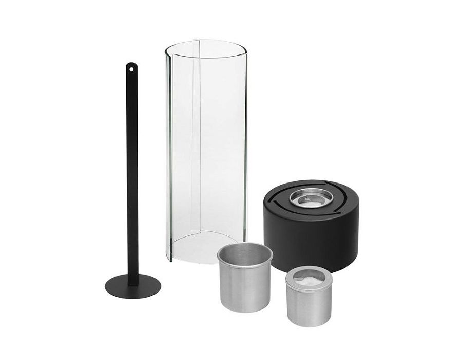 стеклянные перегородки из закаленного стекла (3 шт.), металлическая заглушка, металлическое основание, емкость для биотоплива